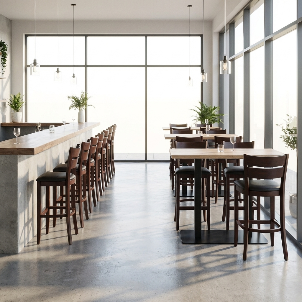 Ergonomisk barstol til restaurantbrug Vera barstolen er et perfekt match til vores Vera restaurantstol. Med en sædehøjde på 71 cm er den ideel bag enhver disk. Vi anbefaler dog, at du tjekker, om den angivne sædehøjde passer til dine behov, før du bestiller, da barstole normalt er meget forskellige på dette punkt.