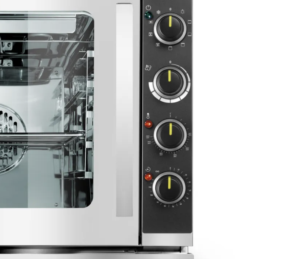 Die manuelle Steuerung ermöglicht eine präzise Einstellung von Programmauswahl, Temperatur, Zeit und Dampfmenge – für maximale Flexibilität bei allen Garprozessen. Ob Auftauen, Vorwärmen, Heißluft, Grillen, Dämpfen oder Kombinationsbetrieb – dieser Kombidämpfer deckt alle Anforderungen moderner Gastro-Küchen ab.