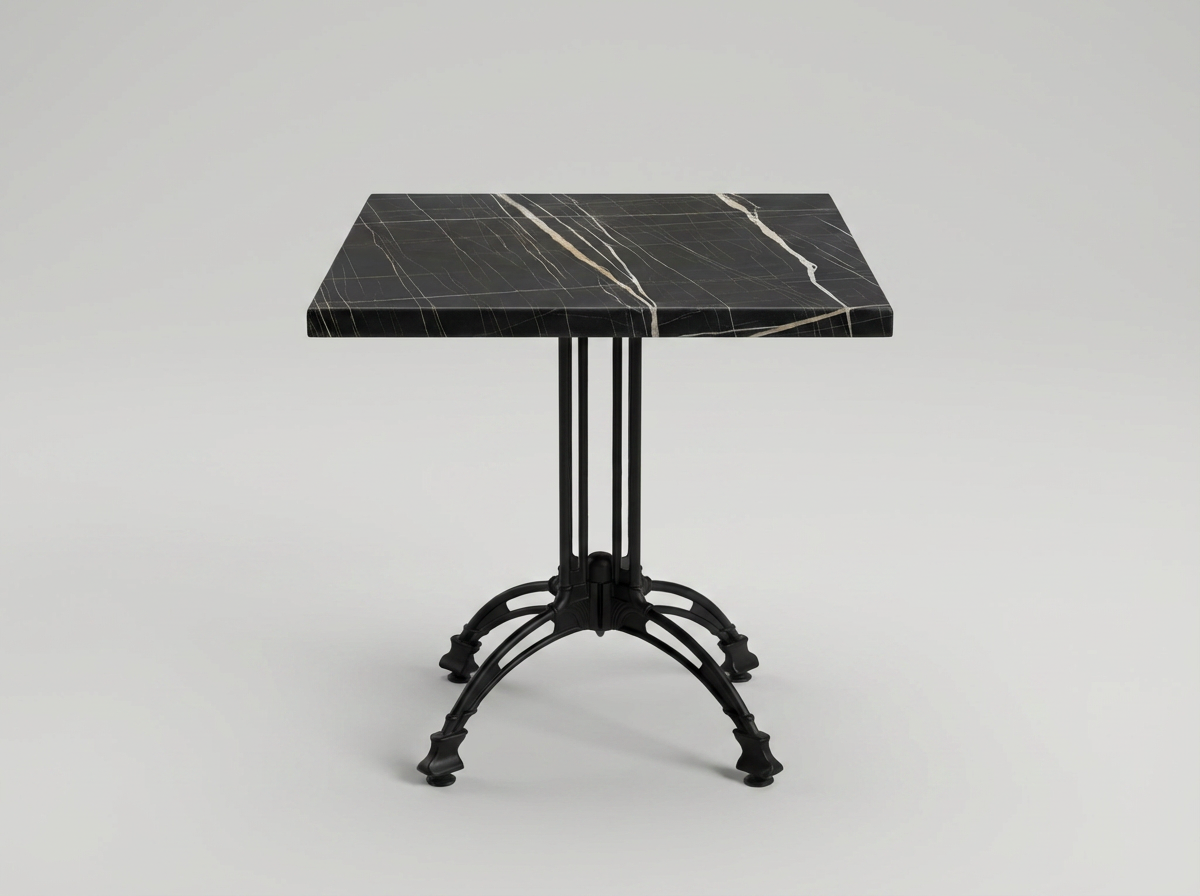 Der Outdoor Bistro Tisch Brest vereint modernes Design, robuste Materialien und höchste Funktionalität für den professionellen Einsatz in der Gastronomie. Mit seiner eleganten schwarzen Marmor Optik und der widerstandsfähigen HPL-Tischplatte ist dieser Außengastronomie Tisch die ideale Wahl für Restaurants, Cafés, Hotels, Bistros und Terrassenbereiche.