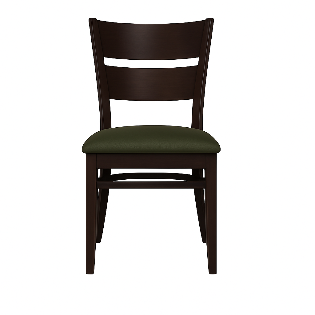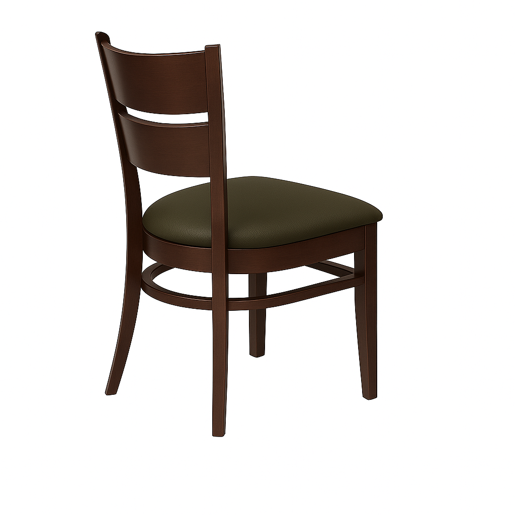 Der stabile Vollholzrahmen sorgt für eine hohe Langlebigkeit im täglichen Einsatz, während die gepolsterte Sitzfläche Gästen ein angenehmes Sitzgefühl bieten. Der hochwertige Kunstlederbezug in olivgrünen Farbe ist nicht nur ein optisches Highlight, sondern auch besonders pflegeleicht – ideal für den professionellen Einsatz in der Gastronomie.