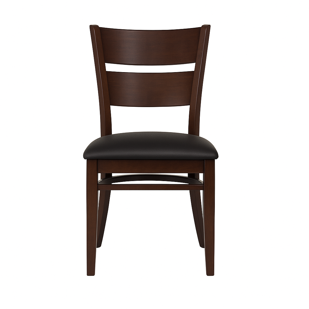 Der stabile Vollholzrahmen sorgt für eine hohe Langlebigkeit im täglichen Einsatz, während die gepolsterte Sitzfläche Gästen ein angenehmes Sitzgefühl bieten. Der hochwertige Kunstlederbezug in schwarzer Farbe ist nicht nur ein optisches Highlight, sondern auch besonders pflegeleicht – ideal für den professionellen Einsatz in der Gastronomie.