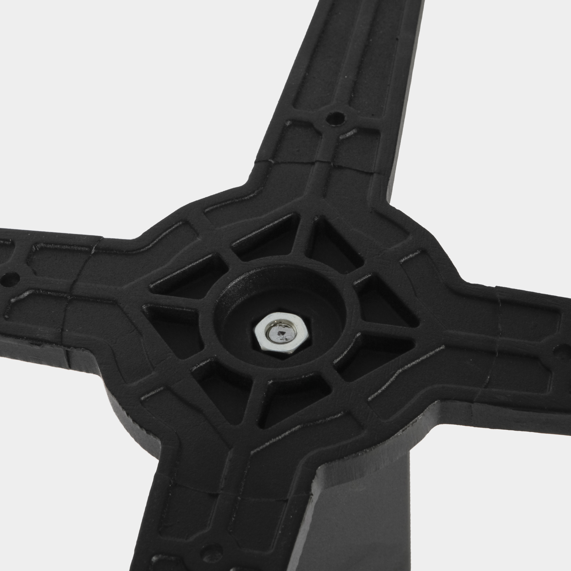 Dieses Tischgestell wurde speziell für den Einsatz in gastronomischen Einrichtungen sowie im Innen- und Außenbereich konzipiert. Die Konstruktion besteht aus einem Kreuz- und Säulenelement aus hochdruckgegossenem Aluminium sowie einem Sockel aus Gusseisen. Die Oberfläche ist mit einer elektrostatischen Pulverbeschichtung versehen und in der Farbe Schwarz erhältlich – für eine langlebige, korrosionsbeständige Nutzung.