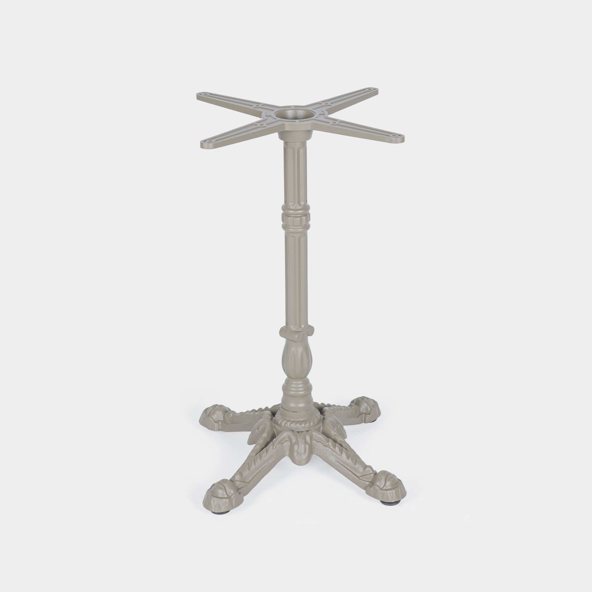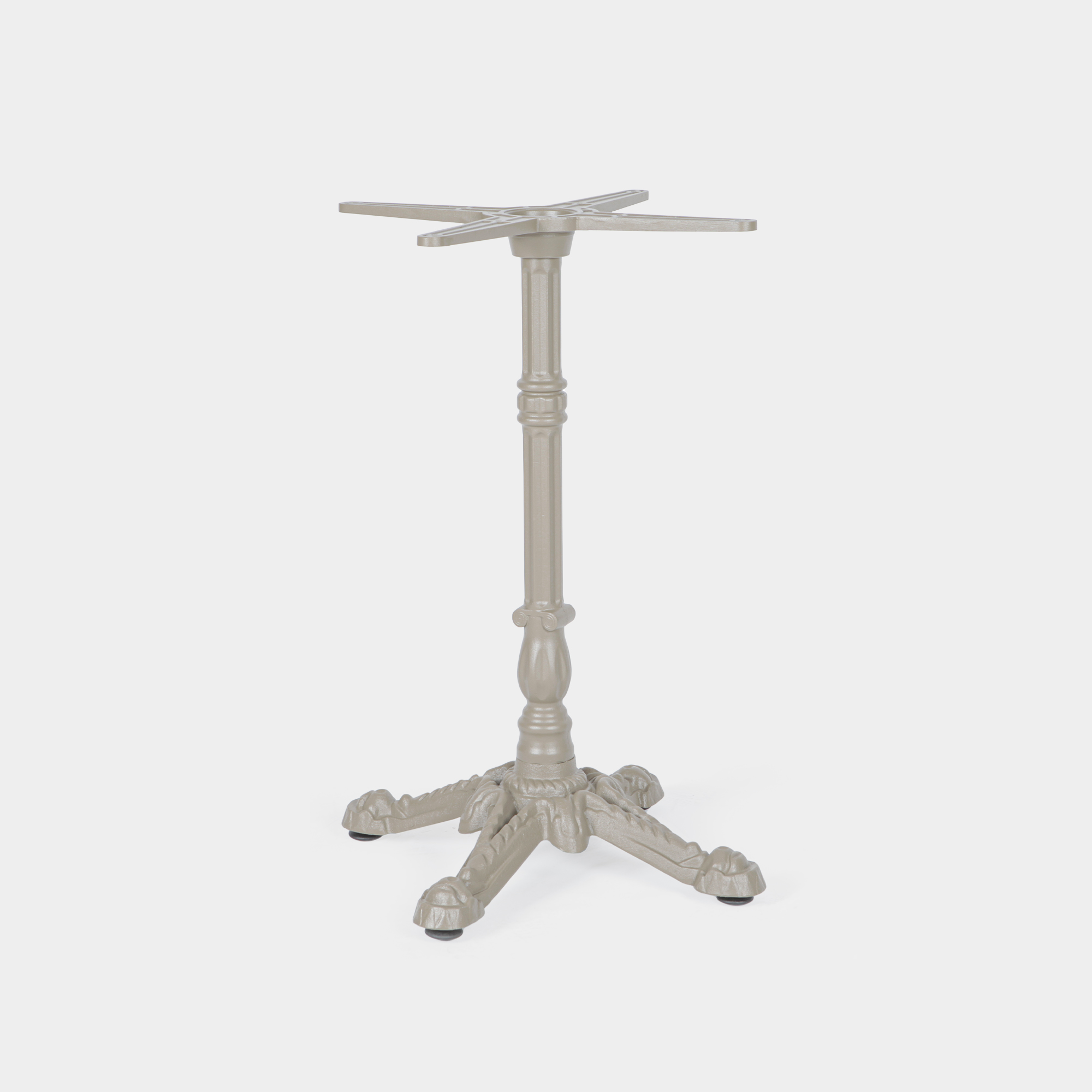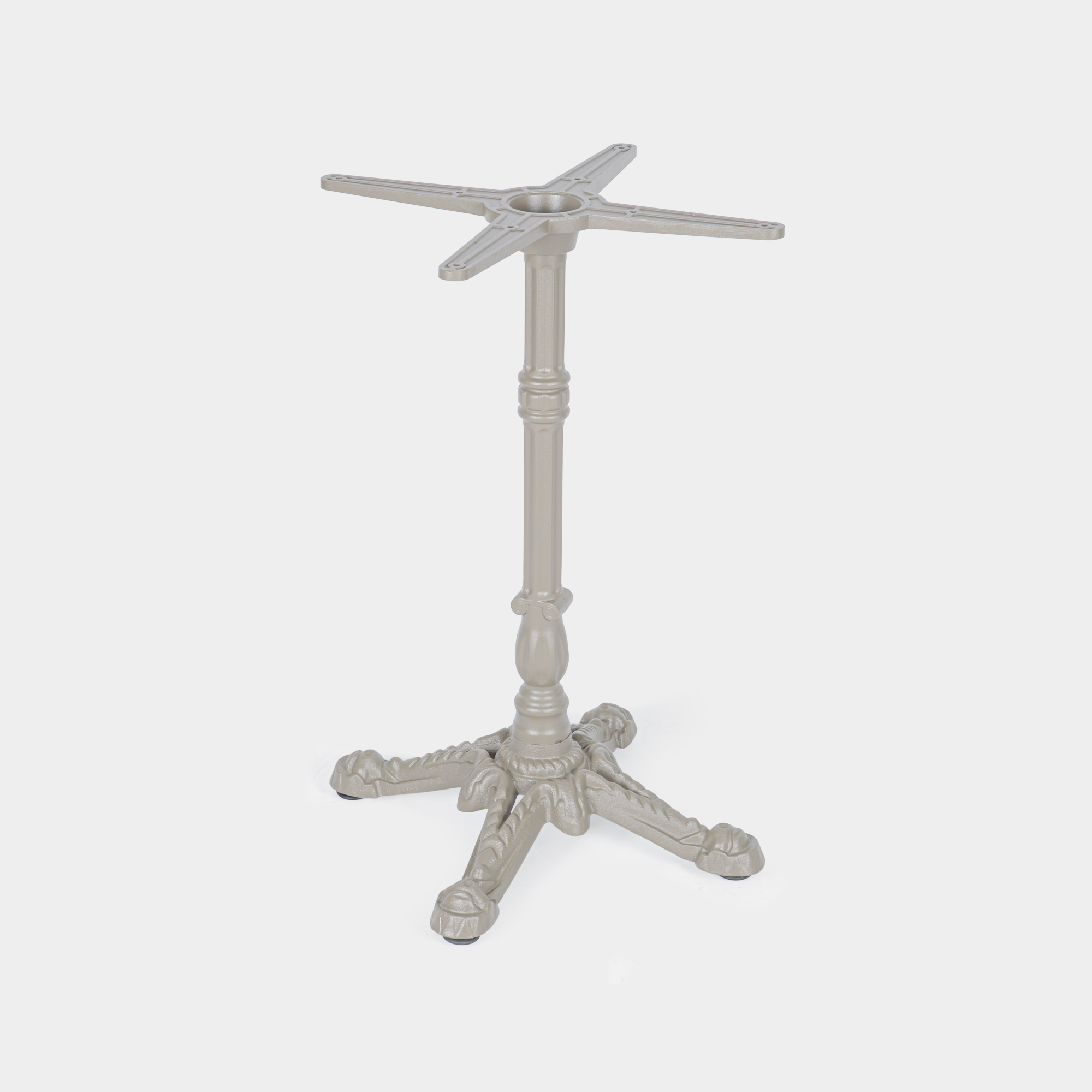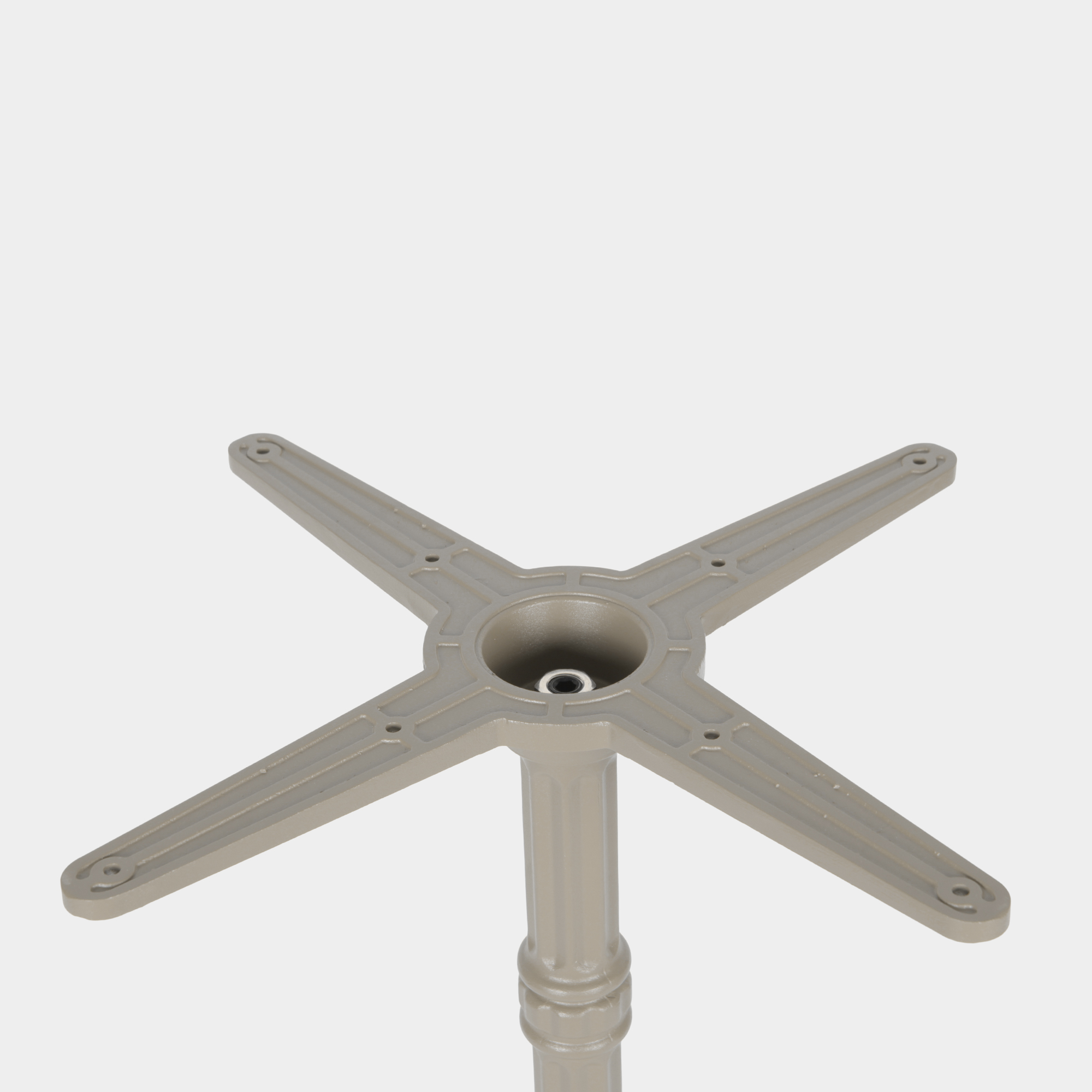 Das Produkt wurde speziell für den Einsatz in gastronomischen Einrichtungen sowie im Innen- und Außenbereich konzipiert. Die Konstruktion besteht aus einem Kreuz- und Säulenelement aus hochdruckgegossenem Aluminium sowie einem Sockel aus Gusseisen. Es bietet eine hohe Maßhaltigkeit, Korrosionsbeständigkeit und ein ausgewogenes Gewicht – ideal für den professionellen Dauereinsatz in Restaurants, Cafés oder Hotellerie. Die Montage erfolgt schnell und unkompliziert.