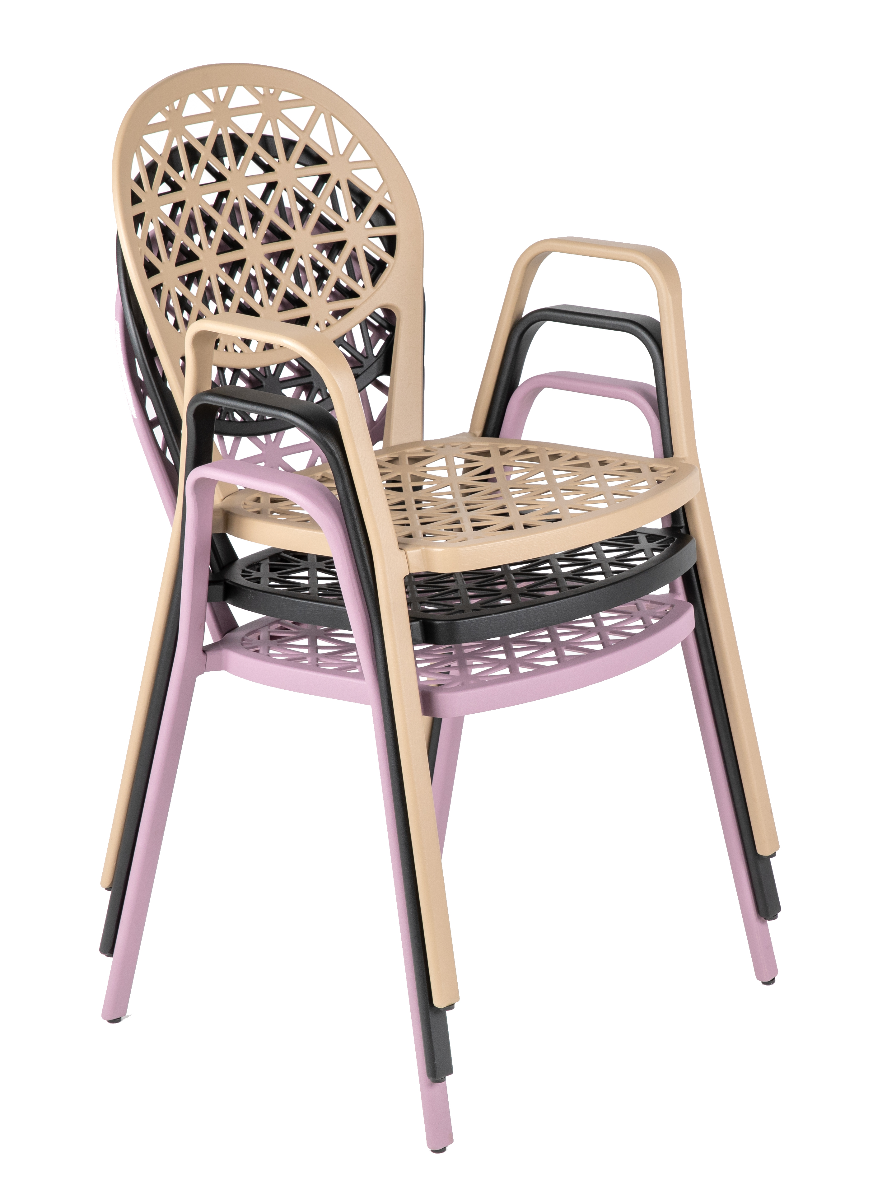 Takket være det stabelbare design er den særlig praktisk til brug udendørs, på terrasser, i caféer, hoteller eller cateringvirksomheder.
